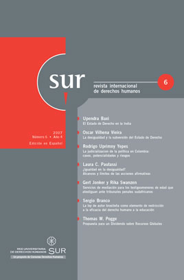 Sur – Revista Internacional de Derechos Humanos, creada en 2004 y publicada por Conectas Derechos Humanos, produce, promueve y difunde investigaciones e ideas innovadoras, principalmente del Sur Global, sobre prácticas en materia de derechos humanos.