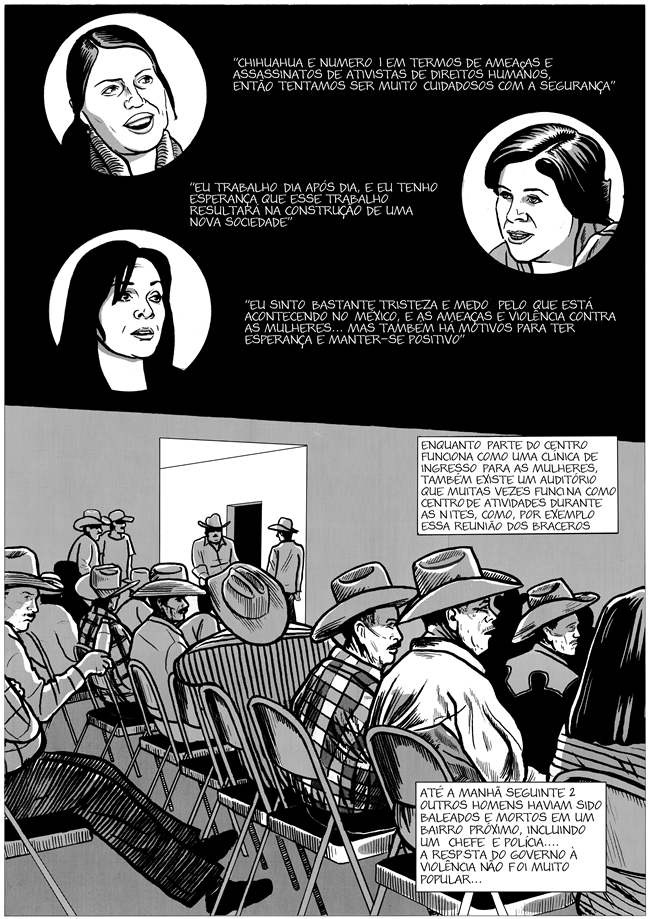 Na minha organização começamos defendendo os direitos humanos em crimes de gênero, isto é, o feminicídio, o tráfico, a violência doméstica e a violência sexual. Então as vítimas invisíveis da guerra contra as drogas bateram em nossas portas: mães, filhas, irmãs de torturados, desaparecidos à força e defensores/as de direitos humanos sob ameaça. Com toda modéstia, nos tornamos a linha de frente de Chihuahua.