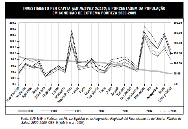 Da perspectiva dos direitos humanos, as informações mais valiosas referentes à alocação de recursos se referem à “identificação da parcela da população priorizada” o que, por sua vez, “nos permite averiguar se um governo cumpre seu compromisso de promover a não discriminação (IMMHR, 2010, p. 7). Por exemplo, o relatório que escrevi por encomenda da “Médicos pelos Direitos Humanos”, intitulado “Atrasos fatais: mortalidade materna no Peru”, mostrou que o governo do Peru alocava recursos insuficientes nas regiões mais carentes do país. Um exemplo disso é o Estado de Huacanvelica, onde mais de 90% da população vive em condições de extrema pobreza e que, apesar disso, recebia a mesma fração dos gastos federais com a saúde que outras regiões litorâneas mais urbanizadas e ricas.